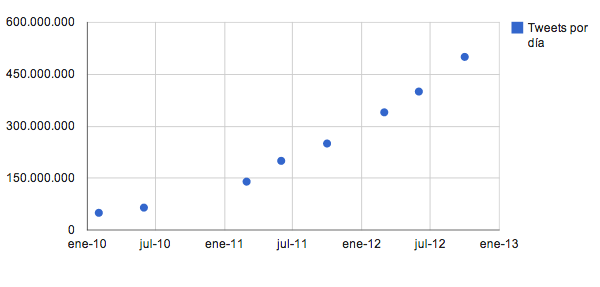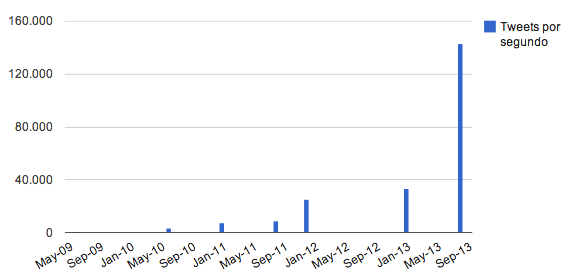 Mientras que los tweets por segundo están relacionados con eventos puntuales y especiales (fin de año, mundiales de fútbol, la Super Bowl americana, etc), los tweets por día podemos decir que tienen un carácter más independiente. Las últimas cifras anunciadas por la compañía: 143.199 tweets por segundo en agosto de 2013 y 500 millones de tweets al día en octubre del año pasado.