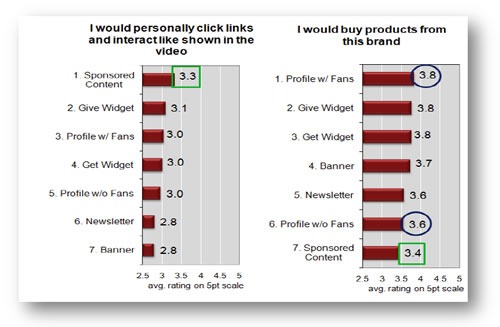 Un estudio realizado en Mayo del año pasado por la compañía de investigación Psychster preguntó a los consumidores ¿Cómo habían interactuado con los anuncios en los sitios sociales? Con aproximadamente 700 usuarios de FAcebook y al menos 500 usuarios de cocina/recetas/socialización del sitio web AllRecipes (quien patrocinó el estudio), Psychster mostró a los participantes un video de un tipo de anuncio y una interacción. A continuación los participantes tenían que calificar qué tan probable era que interactúan con el anuncio que el vídeo mostró y cómo ven la marca que patrocina los anuncios (ya sea una marca de sopa o de autos) en el vídeo.